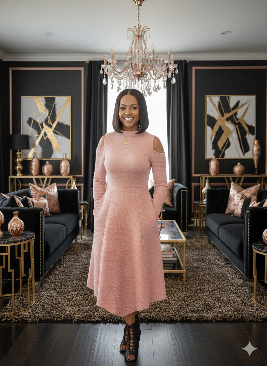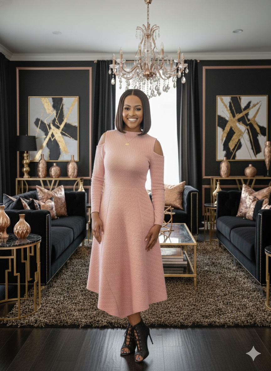The Steady Grace Dress in Rose combines timeless elegance with modern comfort. This sophisticated piece features a flattering cold shoulder design that adds contemporary flair to your wardrobe. Crafted from a soft, high-stretch fabric, it moves with you throughout your day while maintaining its refined silhouette. The seamless closure ensures a polished look, and the true-to-size fit means you can shop with confidence. Perfect for elevated casual occasions or dressed up for evening events.